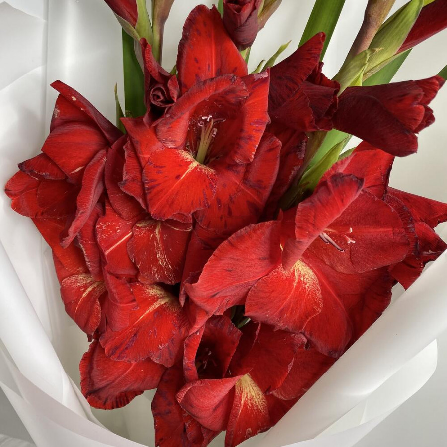 На фото букет из 3 красных гладиолусов. В составе: гладиолус 3 шт, дизайнерская упаковка 2 шт, атласная лента 2 шт, . Все цветы свежие и ароматные, букет красиво оформлен и отлично подходит для подарка. Доступна доставка цветов или самовывоз.