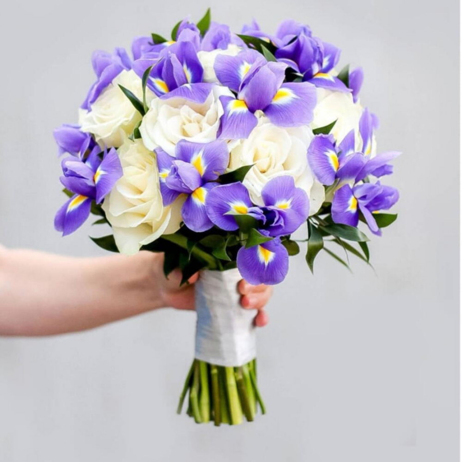 Букет невесты из белых роз и ирисов