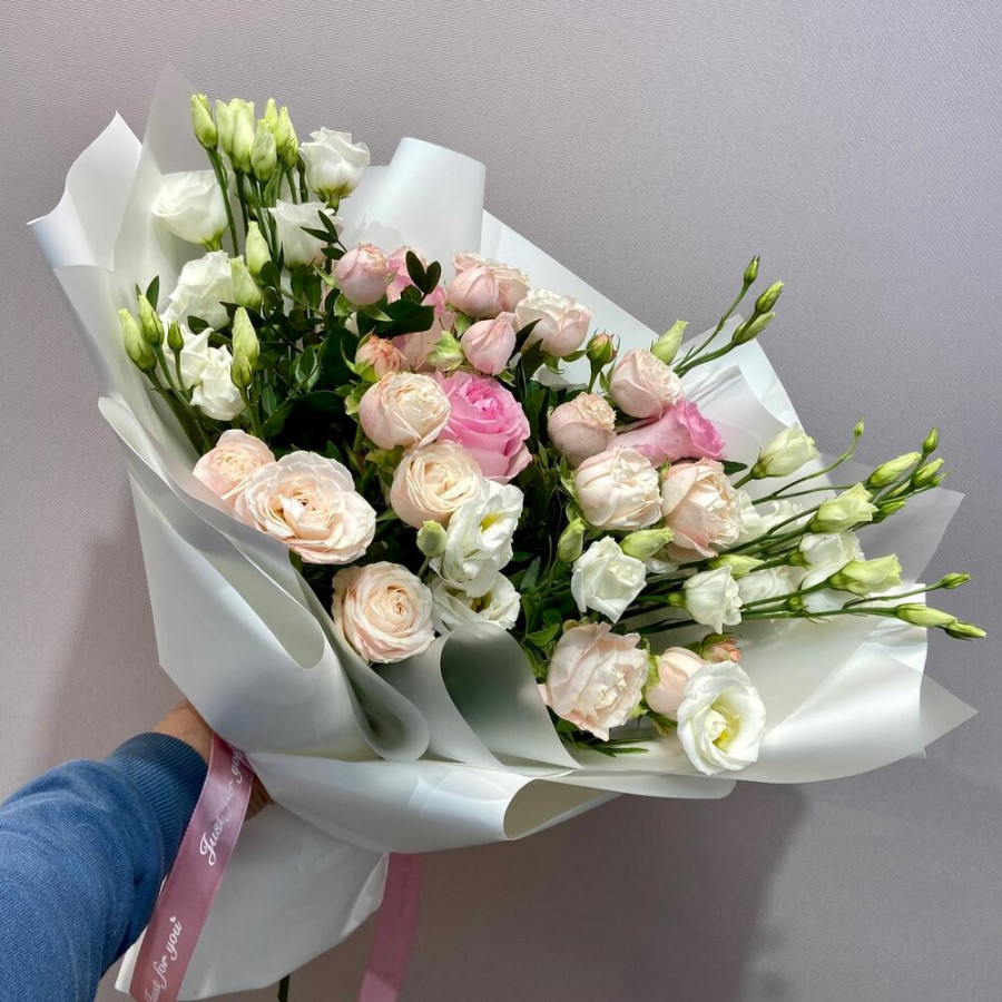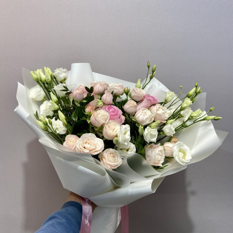 Букет из пионовидных роз и белых эустом в Рыбинске